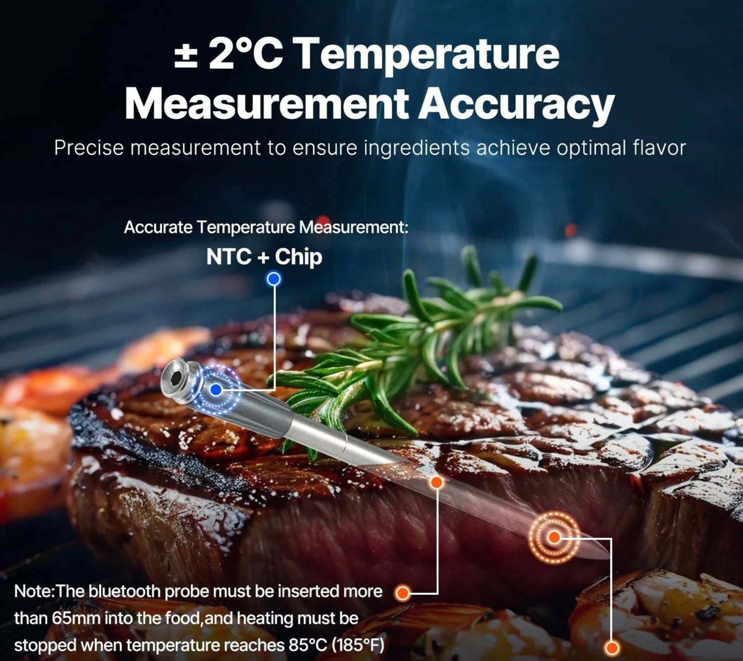 - FLAWLESS ACCURACY: Get pinpoint readings within ±1.0°C from a high-performance NTC sensor.